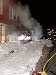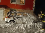 Situation beim Eintreffen: Aus bisher ungeklärter Ursache kam ein abgestellter PKW vor einem Wohnhaus in Löffelbach zu Brennen.