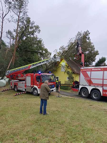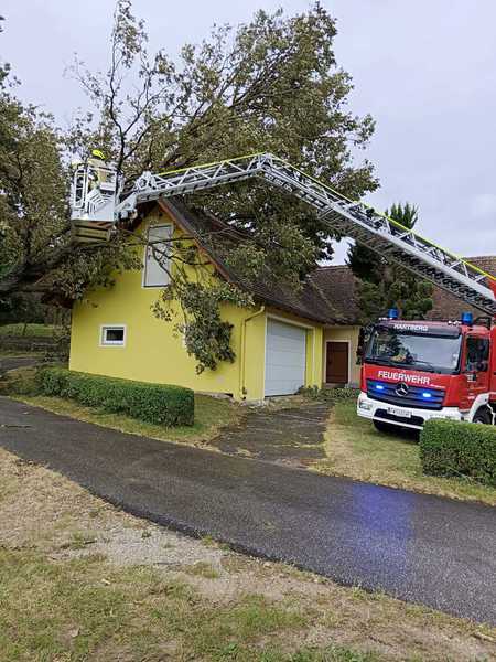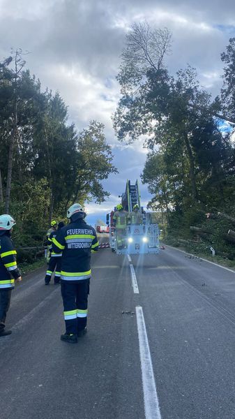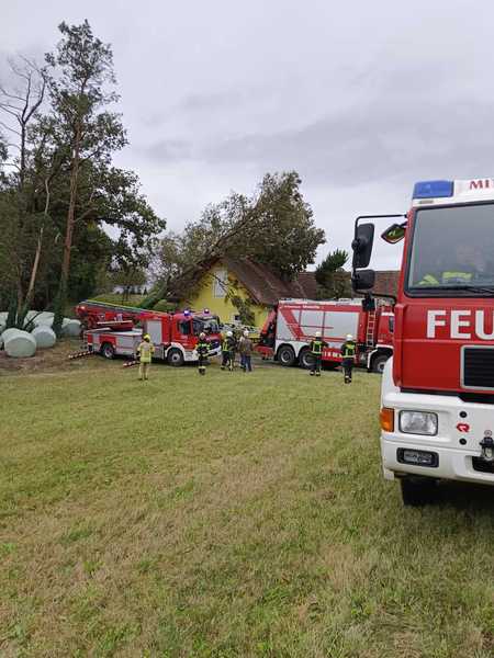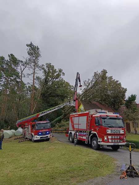 Situation beim Eintreffen: Im genannten Zeitraum herrschte ein extrem starker Sturm in unserem Gebiet. Alle umliegenden Feuerwehren waren durch die ständig umfallenden Bäume stark gefordert. Wir waren Tag und Nacht im Einsatz um die starken Schäden zu beseitigen. Der anhaltende Sturm erschwerte uns die Arbeit umso mehr. Am Abend des 16.09.2024 waren wir mit dem Aufarbeiten sämtlicher Schadenslagen endlich fertig und konnten wieder ins Rüsthaus einrücken.